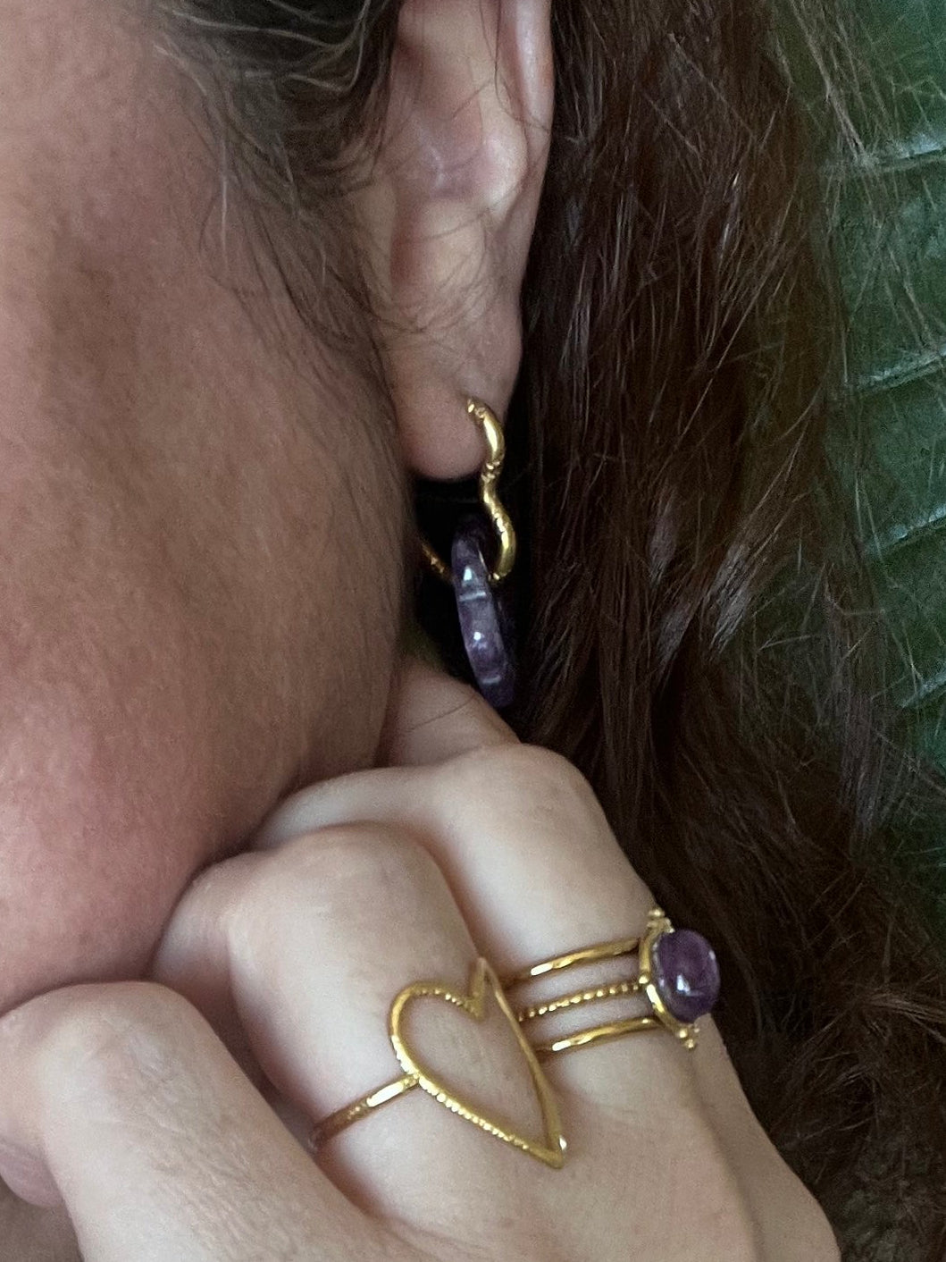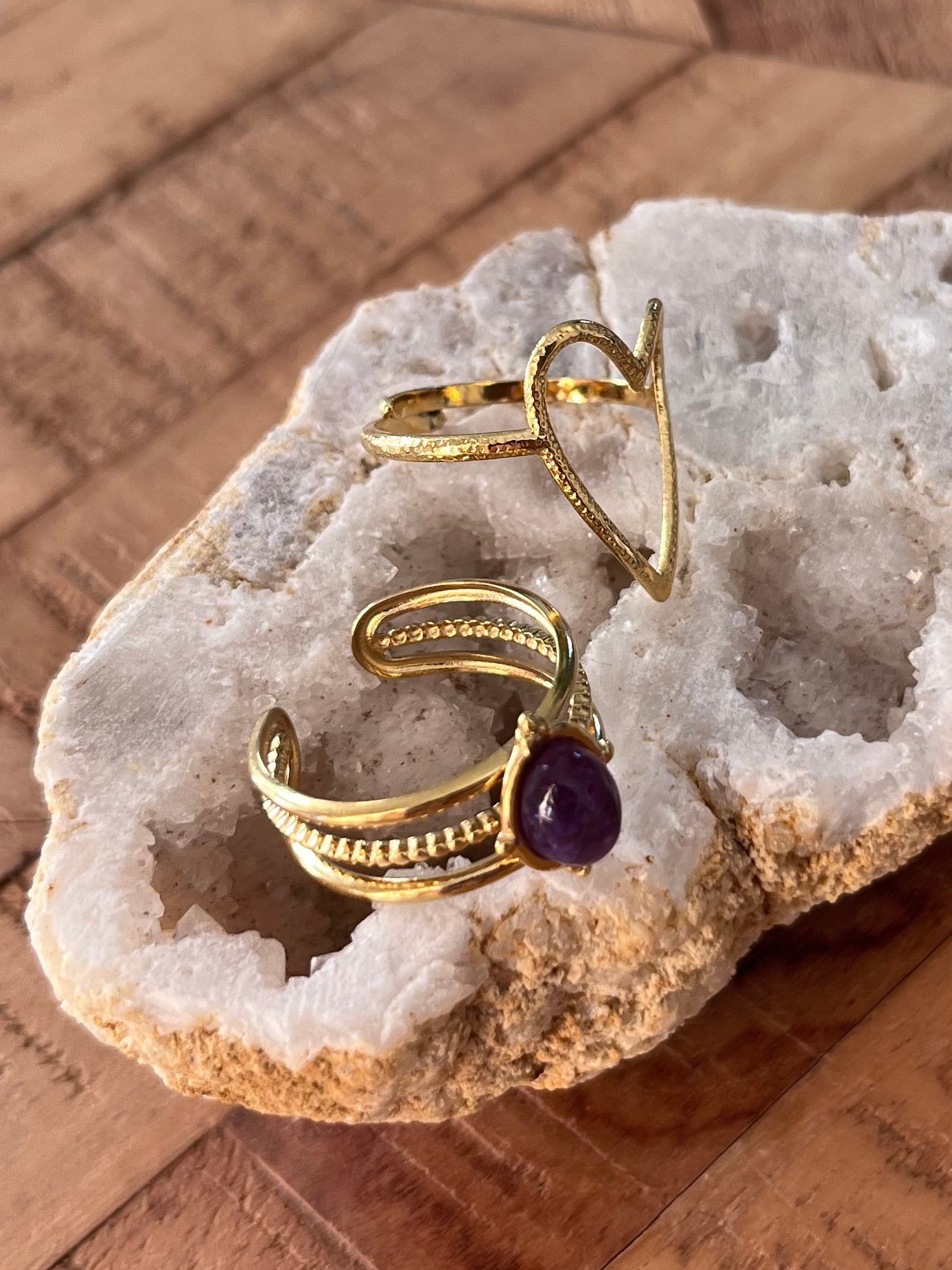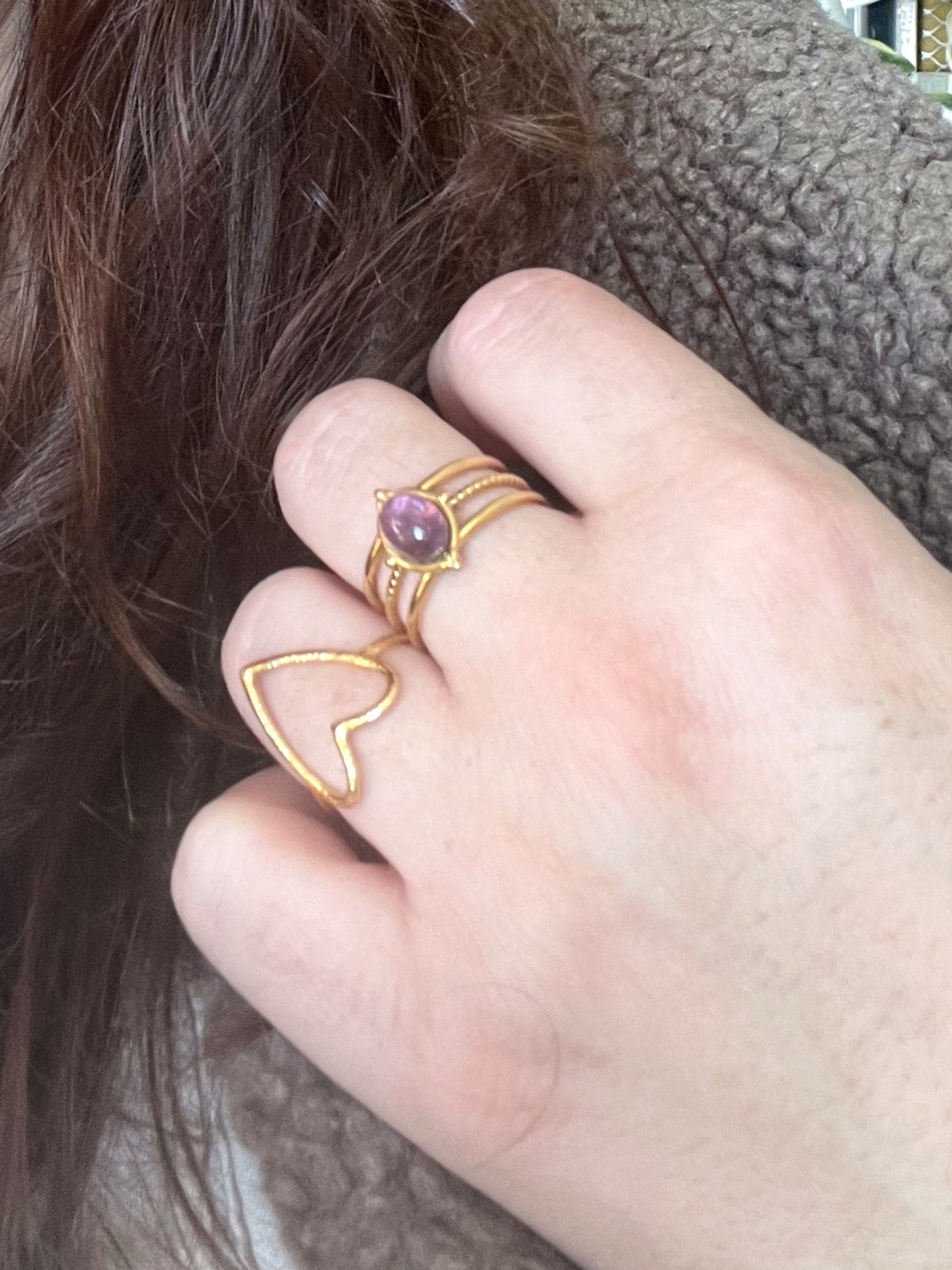 Duo de bagues cœur & améthyste - doré
